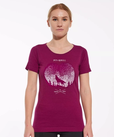 Koszulka damska z krótkim rękawem merino Brubeck OUTDOOR WOOL PRO śliwkowy