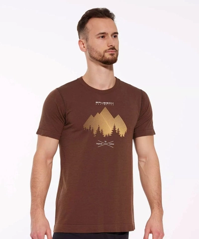 Koszulka męska z krótkim rękawem merino Brubeck OUTDOOR WOOL PRO brązowy